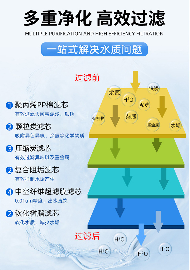 压缩活性炭滤芯:以好的果壳炭及煤质活性炭为原料,采用高科技技术,经特殊工艺加工而成,活性炭滤芯内外均分别包裹着一层有过滤作用的无纺布,确保炭芯本身不会掉落炭粉,外层为塑料网套,使滤芯具有完整的外表与整洁的外观。炭芯两端装有柔软的橡胶密封垫,使炭芯装入滤筒具有良好的密封性。成品活性炭滤芯均用塑料薄膜严密包封,防止滤芯被污染并保持滤芯经常处于清新状态。它集吸附、过滤、截获、催化作用于一体,使用时不需添加助滤剂,也不需进行碳处理后的过滤。能基本去除水中的杂质物、其他放射性物质,并有脱色、去除异味的功效。